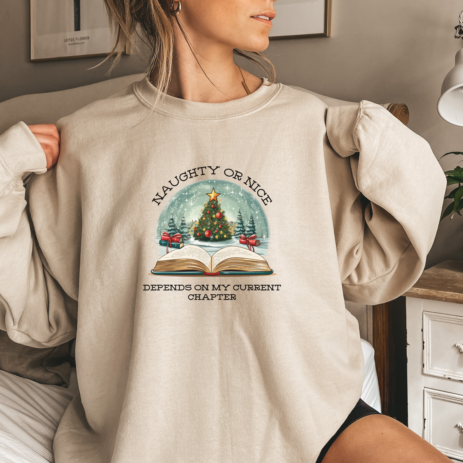 Show off your bookish wit with our Naughty or Nice Chapter Shirt! Perfect for readers who are always changing chapters, this shirt humorously declares your unpredictable nature. Made with high-quality fabric for ultimate comfort and style. Available in a variety of sizes. (Holidays? More like HOLI-daze!)