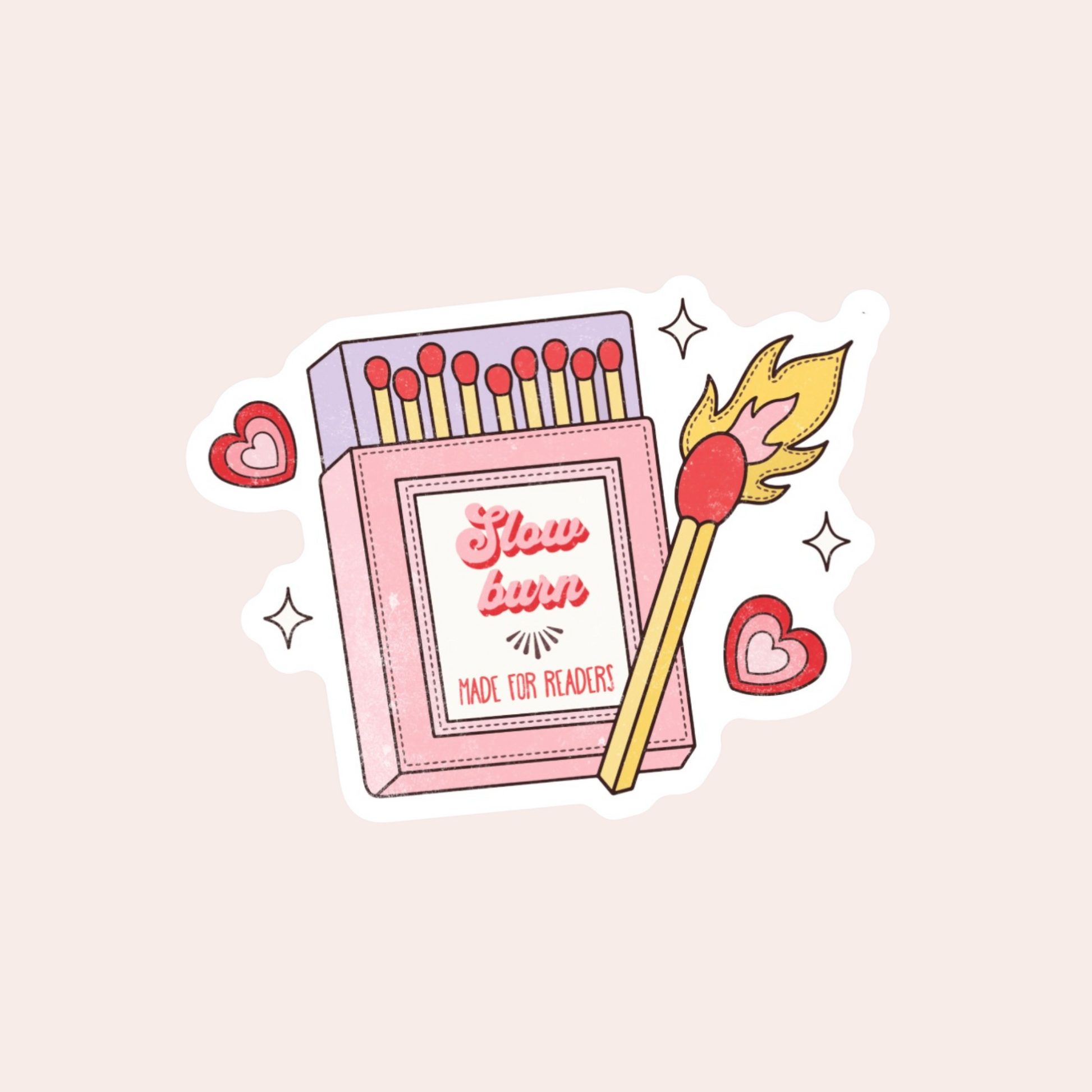 Set hearts on fire with this quirky slow burn romance novel sticker. Perfect for book lovers, this sticker adds a playful touch to any surface.